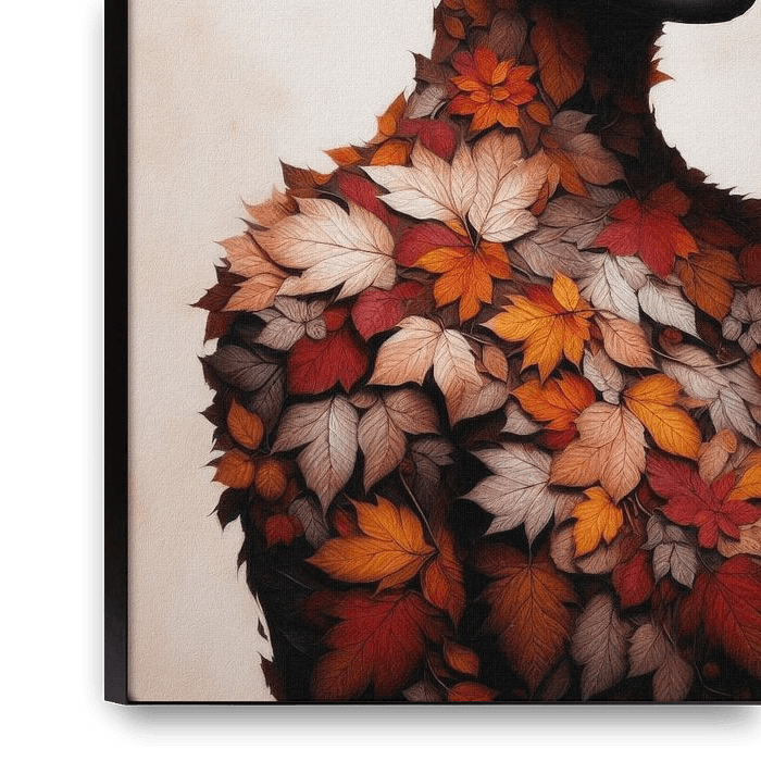Een surrealistisch portret van een mooie vrouw, getooid in herfstbladeren.