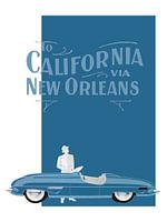Mijn digitale bewerking van de illustratie genaamd "Classic car series, Blue Roadster" in 1944 gemaakt door T.W. Pietsch II.