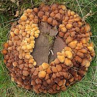Picture of mushrooms around a tree stump, found at the edge of forest and heath of Vasse (Netherlands), 2015
