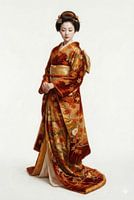 "Autumn Geisha" toont een geisha in een verfijnde, traditionele kimono, rijk gedecoreerd met herfstkleuren en motieven zoals esdoornbladeren en chrysanten. De warme, diepe kleuren van rood, goud en bruin vangen perfect de essentie van het…