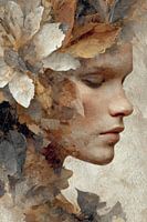 Silent Harmony is een dromerig portret waarin vrouwelijke zachtheid samensmelt met de rust van de natuur. Warme aardetinten, transparante bladeren en een schilderachtige textuur creëren een serene en tijdloze sfeer.