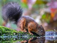 Drinkende eekhoorn in de Clingse bossen met herstkleuren