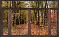 Uitzicht vanuit een raam op een prachtige laan in de herfst.