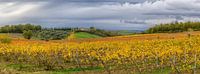panorama van een wijngaard in herfstkleuren in de buurt van Pienza, Toscane.