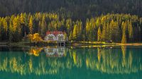 Herfst in aantocht aan het Lago di Anterselva ofwel Antholzer See in de Dolomieten.
