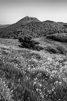 Vulkaanlandschap in Frankrijk in zwart-wit.