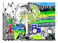 Het concept van bewustzijnsstroom en projectie vanuit het gedeeltelijke onbewuste kan een groot deel van mijn werk omschrijven. Het gaat om het achterlaten van sporen op papier, op een medium met harmonie, schoonheid en esthetiek. Er komt een beeld in me op en ik denk na of ik het moet toevoegen of niet. Misschien is het een beetje zoals aantekeningen maken. Meestal zijn het begin en het verloop onvoorbereid en verlopen ze spontaan, maar soms…