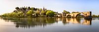 De brug Pont Saint-Bénézet voor de oude stad en het pauselijk paleis van Avignon in Frankrijk / Zuid-Frankrijk bij zonsopgang.