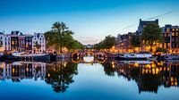 De Amstelrivier vloeit door het hart van Amsterdam, en normaal gesproken varen hier tientallen rondvaartboten. Maar nu was er een unieke gelegenheid om dit beeld vast te leggen zonder boten, dus met heel kalm water en reflecties van de grachtenpanden.