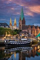 Historische stad Bremen met oud zeilschip op rivier de Weser, Duitsland