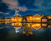 De molen "De Adriaan" in Haarlem mag iconisch worden genoemd in het aanzicht van de oerhollandse stad. Het water van de Spaarne geeft een prachtige reflectie.