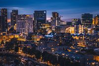 De avond valt in Rotterdam, Nederland.