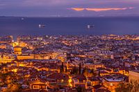 Skyline van Thessaloniki, Griekenland. Gefotografeerd vlak na zonsondergang, tijdens het blauwe uurtje.