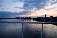 De dag trekt zich langzaam terug uit de stad. Het licht verzacht, contouren lossen op en beweging maakt plaats voor een kort moment van rust. Water en lucht spiegelen elkaar, terwijl de stad als een stille achtergrond aanwezig blijft.