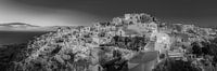 * Santorini in de avond * Zwart-wit reisfotografie. Avondsfeer boven het dorp Oia op het Griekse eiland Santorini in de Middellandse Zee.
