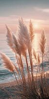 Het tere pampagras danst als een stil gedicht in de wind in het laatste licht van de dag. Elk veertje wiegt zachtjes in de zoute bries, gedrenkt in de gouden gloed van de ondergaande zon. De fonkelende reflecties van het licht op het water lijken op kleine sterren die wiegen op het ritme van de golven. Deze foto vertelt tegelijkertijd over verlangen en geborgenheid. Het roept herinneringen op aan warme zomerdagen, wandelingen op blote voeten op het strand en het zachte ruisen van de natuur wanneer alles tot rust komt. Een visuele streling voor de ziel die kamers verandert in oases van ontspanning.