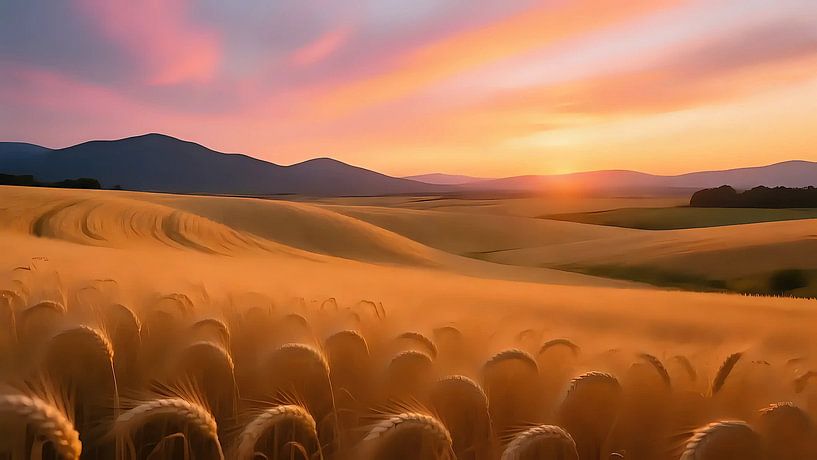 Koop dit digital art kunstwerk Avondadem van tarwe van Jean Pierre als reproductie op canvas, aluminium dibond, (ingelijste) fotoprint, behang en ArtFrame, op maat geprint in Fine-Art kwaliteit.