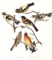 John James Audubon werd geboren op 26 april 1785 in Les Cayes, Santo Domingo, Frankrijk (nu Haïti). Van het landgoed van zijn vader in Pennsylvania maakte Audubon de eerste Amerikaanse experimenten met vogelbanden. Hij begon alle ornithologische dingen te verzamelen en potlood- en pasteltekeningen van vogels te maken. Toen zijn zelfvertrouwen als kunstenaar groeide, waagde hij zich aan aquarellen, het medium dat hij het vaakst zou gebruiken. Audubon werd een reizende kunstenaar, die af en toe leerlingen lesgeeft, maar altijd lokale vogels en hun natuurlijke habitat schildert. Zijn belangrijkste werk, een kleurenplaatboek getiteld The Birds of America (1827-1839), wordt beschouwd als een van de beste ornithologische werken ooit voltooid. Audubon stierf op 27 januari 1851 in New York City. Noot: Dit werk is ook zonder begeleidende tekst in de illustratie te verkrijgen. Neem hiervoor contact met ons op.