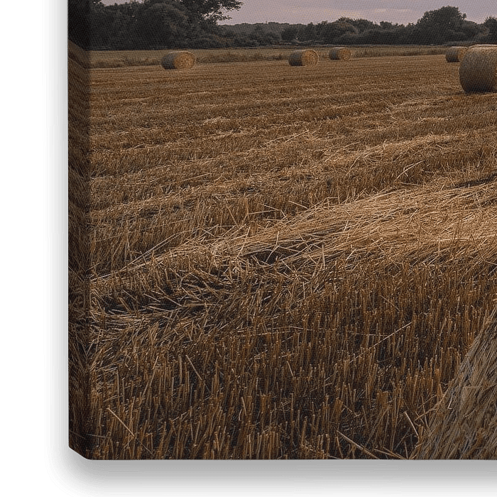 Een hooibaal in het veld de avondspoeling is in volle gang. Het onweer is al voorbij.