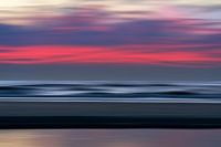 Kleuren op het Noordzeestrand tijdens het blauwe uur, artistieke vervreemding met een vervagingseffect voor een decoratief abstract beeldeffect, contrastrijk beeld