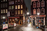 Deze foto van een leeg De Wallen is gemaakt tijdens de Avondklok in Amsterdam gedurende de corona-pandemie.