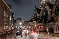 Deze foto van een leeg Oudekerksplein met de Oudekerk op de Wallen is gemaakt tijdens de Avondklok in Amsterdam gedurende de corona-pandemie.