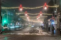 Deze foto van een leeg Rokin is gemaakt tijdens de Avondklok in Amsterdam gedurende de corona-pandemie.