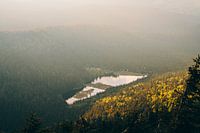 Zijdelings invallend licht bij schemering op het kleine Arbersee meer