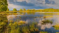 Een avond tijdens zonsondergang op het Kloosterveld in Nationaal Park Dwingelderveld, het grootste natte heidegebied van West-Europa. Gelegen in de Nederlandse provincie Drenthe, in de driehoek Dwingeloo, Ruinen en Beilen. Natte laagtes en hoge zandruggen wisselen elkaar af in het uitgestrekte Dwingelderveld. Je vindt er heide, bos, jeneverbesbosjes, stuifzand en ruim veertig vennen. Een deel van die vennen is ontstaan in de ijstijd, andere zijn het resultaat van veenafgravingen.