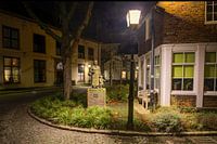 Een sfeervol nachtbeeld van de Markt in Doesburg, prachtig verlicht door klassieke straatlantaarns. Centraal in de foto staat het bronzen beeld ‘Oma met Kleinkind’, gemaakt door kunstenaar Theo Renirie. Het beeld vormt een warm en herkenbaar middelpunt in deze historische straat. De combinatie van avondlicht, oude klinkers,…