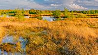 Een 16:9 foto met avondlicht over het Holtveen, gelegen in Nationaal Park Dwingelderveld, het grootste natte heidegebied van West-Europa. Gelegen in de Nederlandse provincie Drenthe, in de driehoek Dwingeloo, Ruinen en Beilen.