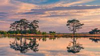 Een 16:9 foto van avondlicht over Kraloo, gelegen in Nationaal Park Dwingelderveld, het grootste natte heidegebied van West-Europa. Gelegen in de Nederlandse provincie Drenthe, in de driehoek Dwingeloo, Ruinen en Beilen.