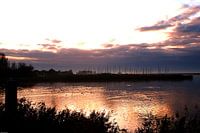 Nieuwste wijk van Almere Poort ligt langs de dijk aan het water deze avondfoto geeft de sfeer mooi weer .