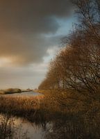 Net voor zonsondergang, tussen regenbui en opklaring in, kleurt de zon het landschap in een gouden gloed.