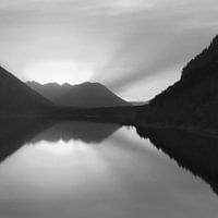 Dit tafereel met avondverlichting op een alpenmeer werd gefotografeerd in Beieren. In de serie "Tijdloos" laat ik mijn kijk zien op eenzame zeegezichten, die voor mij harmonie en rust uitstralen.