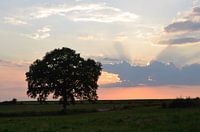 Deze prachtige sterke zomereik komt krachtig uit voor de ondergaande zon. Foto rondom Belval-en-Argonne genomen.