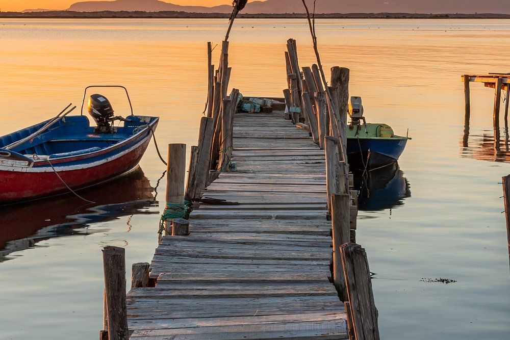 De plaats Carrasqueira ligt aan de lagune die ontstaat door de afvloei van de Rio Sado. De vissers hebben in het verleden zelf allerlei steigers en krakemikkige loopplanken gemaakt om bij hun bootjes te kunnen komen. Het resultaat is een wirwar aan palen en planken, en alles bij elkaar een heel leuk en pittoresk gezicht. Deze foto is gemaakt in het gouden uur net voor zonsondergang.