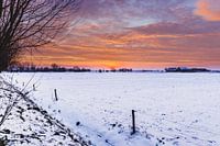 Deze foto is genomen in de omgeving van Kampen in de provincie Overijssel, Nederland. Het was een koude winter ochtend als de zon de laatste dag van de winter in prachtig avondrood verlicht. Een prachtig winter landschap.