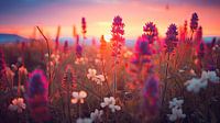 Avondrood over het zomerse bloemenveld van Vlindertuin-Art