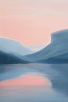 'Avondroze Reflecties' toont een serene weerspiegeling van de laatste zonnestralen in het kalme water van een bergmeer. De zachte overgangen van blauw naar rozige tinten geven het landschap een rustgevend en dromerig effect. De verfijnde eenvoud van dit beeld nodigt de kijker uit om te onthaasten en te genieten van de rustgevende kracht…