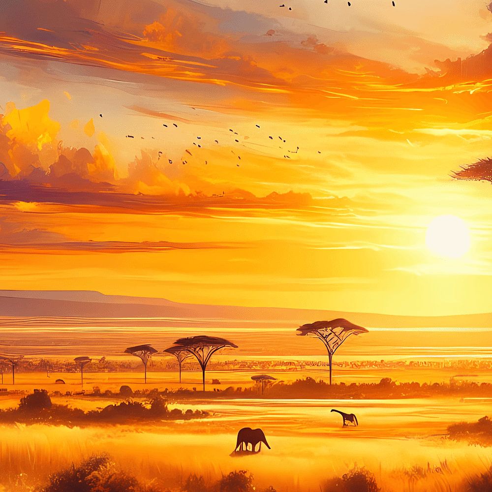 Ervaar de adembenemende schoonheid van de natuur met onze "Twilight Serenade" muurposter, die de betoverende essentie van een savanne bij zonsondergang vastlegt. Dit prachtige kunstwerk toont een levendige lucht geschilderd in oranje, roze en paarse tinten, terwijl de zon zachtjes onder de horizon zakt en een warme gloed werpt over de uitgestrekte open graslanden. Tegen deze betoverende achtergrond staan majestueuze acaciabomen en zacht glooiende heuvels, die een rustige scène creëren die uitnodigt tot reflectie en bewondering. Deze poster is perfect voor elke woonruimte, kantoor of retraite en verandert je omgeving in een serene ontsnapping die doet denken aan rustige avonden in de natuur. Laat de schoonheid van de savanne in de schemering je inspireren tot rust en bezinning in je dagelijks leven, waardoor het een perfecte aanvulling is op je inrichting.