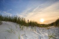 De duinen en de vuurtoren van Lister schijnen in het avondlicht. De zon helt over in het westen. Atmosferische sfeer en warm zand verspreiden een gevoel van welbehagen.
