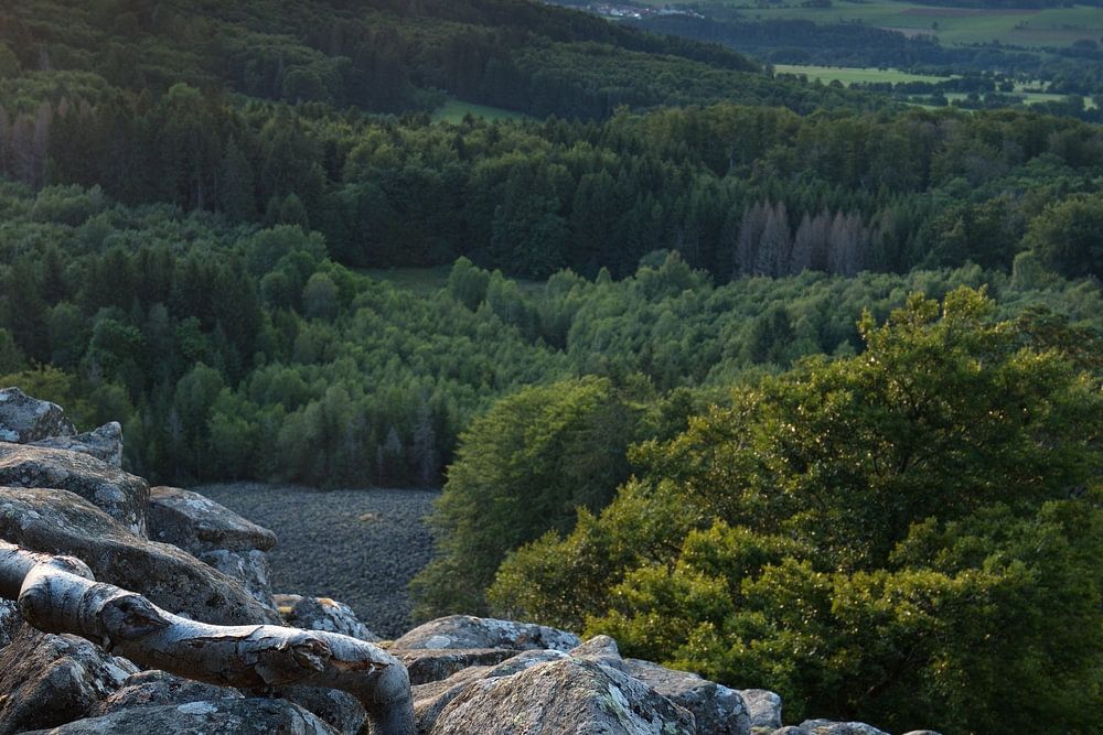 Zicht op de zonsondergang in de Rhön
