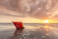 Boei in de avond in het wad, Nationaal Park Waddenzee, Noord-Friesland, Sleeswijk-Holstein, Duitsland