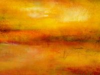 Gefotografeerd landschap digitaal bewerkt...met als resultaat een kleurrijke natuurlijke sfeer in oranje en gele tinten die rust en ontspanning uitstraalt. De textuur straalt een nostalgisch aura uit....Licht, licht, kalmte, warmte, contrasten, turquoise, rood, ontspanning, digitale collage, minimalisme, meer, zonsopgang, zonsondergang, water, romantiek