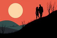 Koop dit landschapskunstwerk Avondwandeling in Silhouet van Art & Soul Creations als print op canvas, aluminium dibond, (ingelijste) fotoprint, behang en ArtFrame. Voor jou op maat geprint in Fine-Art kwaliteit.