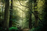 Tijdens het gouden uur valt de zon nog zacht in dit oude Nederlandse bos