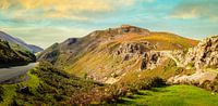 Een prachtig weggetje door het ruige landschap van Wales. Het late zonlicht beschijnt de heuvels. De ruige natuur maakt diepe indruk. Hier kom je weinig mensen tegen. Je ruikt de zeelucht van de Atlantische Oceaan.