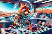 In een futuristisch ruimteschip dat zachtjes rond Mars draait, is een ongewone astronaut aan het werk: een levendige en leergierige vossenkosmonaut. Zijn massieve ruimtepak, uitgerust met de nieuwste technologie en een grote, heldere helm, stelt hem in staat om comfortabel te ademen ondanks de uitdagende omgeving van een buitenaardse…