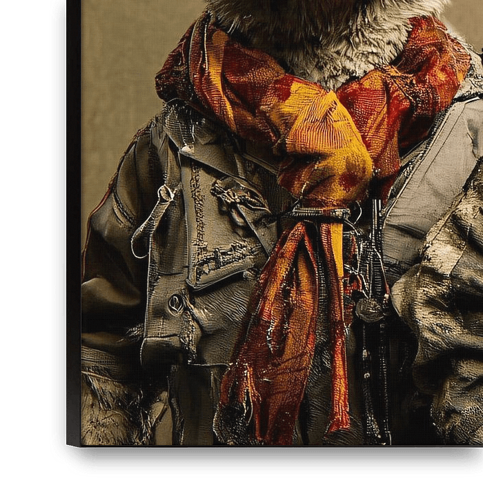 Dit unieke ontwerp toont een verzameling dieren met een avontuurlijke en karakteristieke uitstraling. Elk dier is gedetailleerd afgebeeld in realistische kleding, waaronder leren vesten, camouflage en decoratieve accessoires zoals dassen. De rijke details en levendige kleuren trekken direct de aandacht, waardoor dit kunstwerk een…